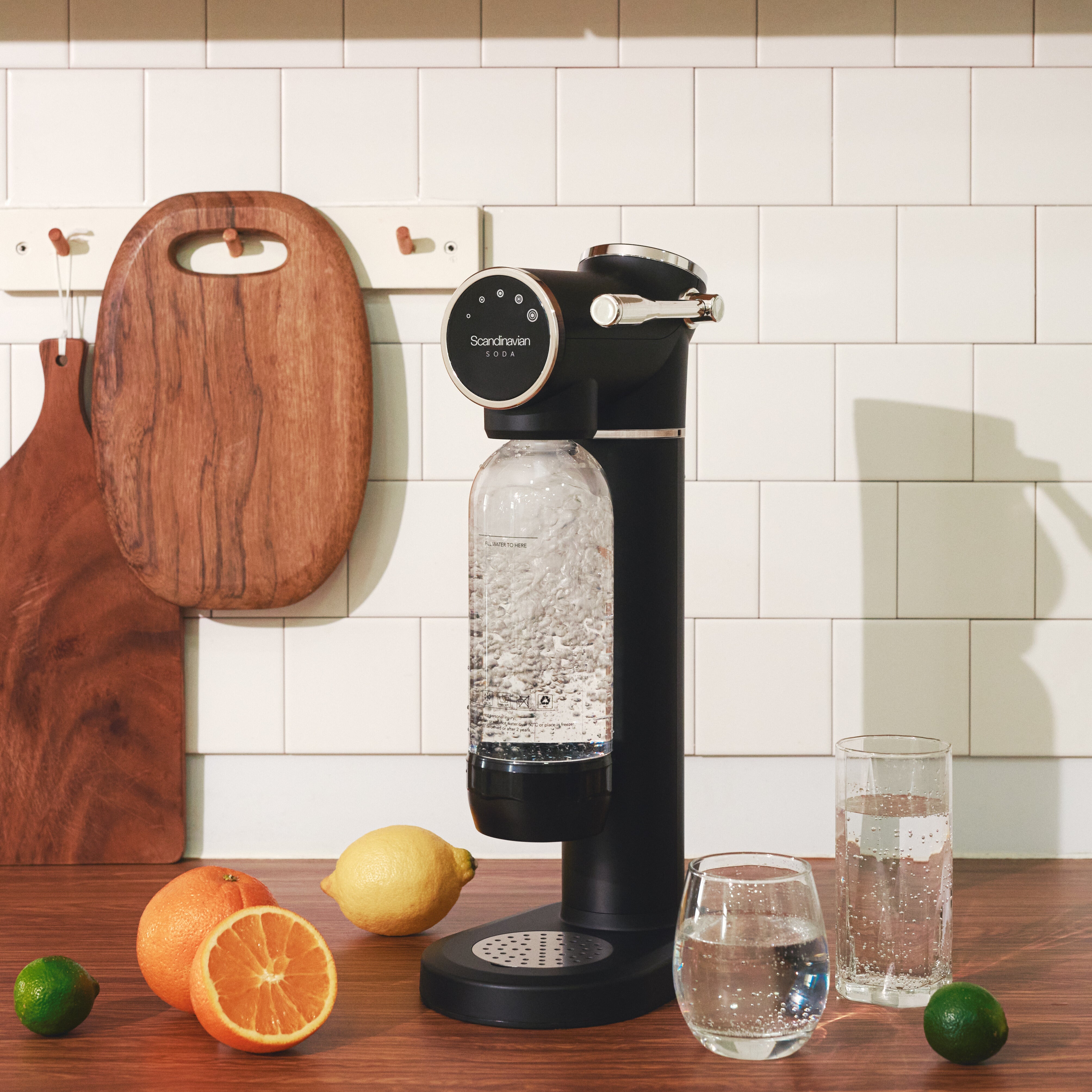 Sodavandsmaskinen fra Scandinavian Soda forener funktionalitet og et klassisk, stilrent design, som med sikkerhed passer til dit køkken, minibaren, terrassen — eller hvor du nu ønsker den. Den kræver nemlig ikke strøm.