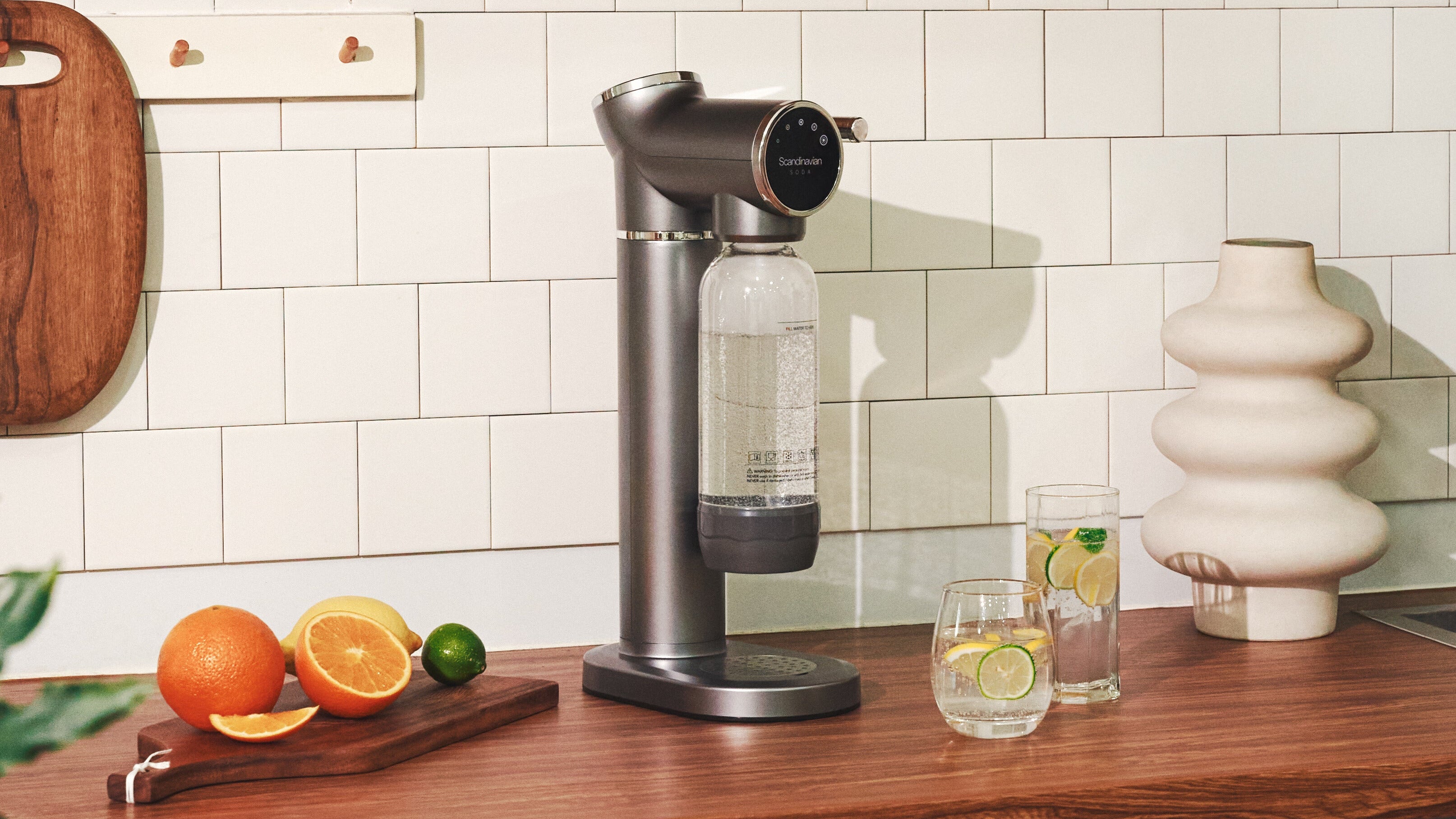 Jeg er virkelig glad for min fra Scandinavian Soda. Den ser godt ud i køkkenet (meget pænere end de gamle sodastreams jeg har haft), og boblerne bliver lige som de skal.